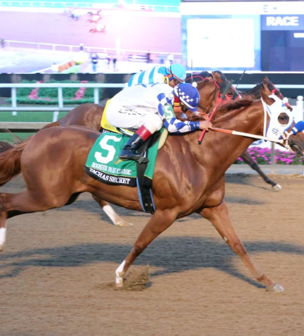 Nascida em março de 2020, filha de Sin Tachas Angel (por Pyc Paint Your Wagon), Tachas Secret é treinada e criada por Ricardo Martinez. De propriedade do Duke Racing LLC, possui 12 vitórias — sendo 9 em provas clássicas — além de 5 segundos e 1 terceiro lugar em 24 apresentações, somando US$ 489.051 em ganhos.