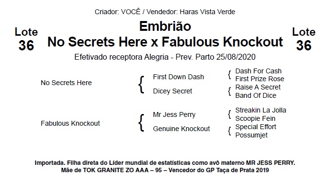 LOTE # 36 Embriào de FABULOUS KNOCKOUT x NO SECRETS HERE