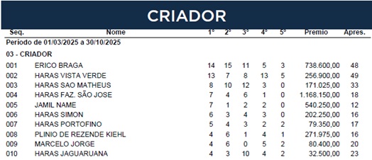 Dentre os criadores, estamos na disputa para ser mais uma vez um dos líderes de estatísticas de Estreantes em vitórias no Jockey Club de Sorocaba