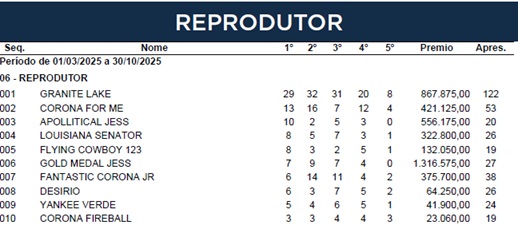 YANKEE VERDE entre os 10 melhores reprodutores em atividade: