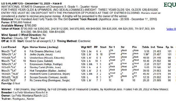 FDD DREAMS é o Champion of Champions de 2025, correndo pela baliza 6, venceu de focinho o favorito JERIKO.