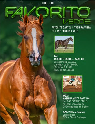 FAVORITO VERDE (Favorite Cartel x Yashira Vista, por One Famous Eagle) agora é uma parceria com o Haras Al Galope do Uruguai, através de seu proprietário o amigo Ignácio.